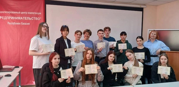 В содружестве с ГБОУ "Хакасский колледж профессиональных технологий, экономики и сервиса" прошло вручение Свидетельств о присвоении квалификации" Агент рекламный". Одними из, завершивших курсы, ученицы 10Б класса: Быкова Виктория, Танбаева Кира, Кокорина Валерия