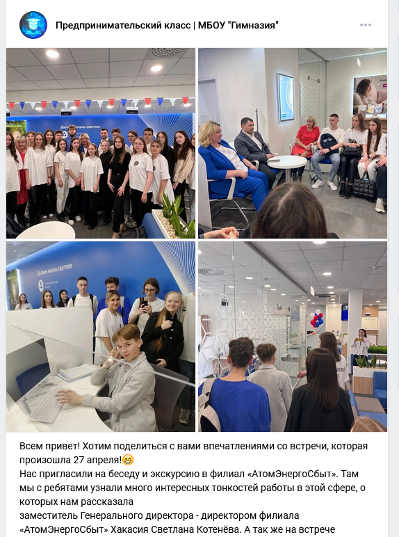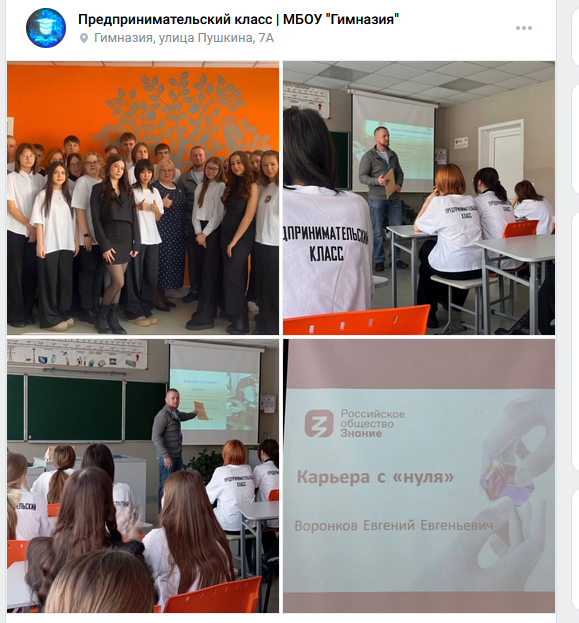https://vk.com/public216904475?w=wall-216904475_4036 Постоянные экскурсии учащихся гимназии в городские техникумы с целю знакомства профессий и участие в профессиональных пробах. Вот одна из них.